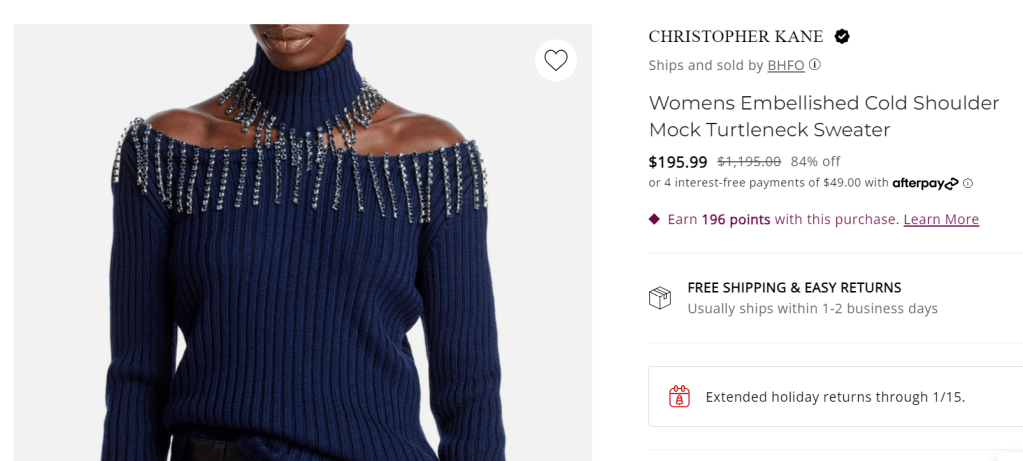 compared with $1,102 at Farfetch (