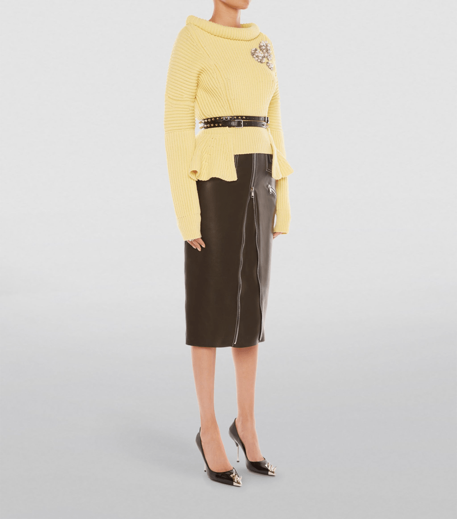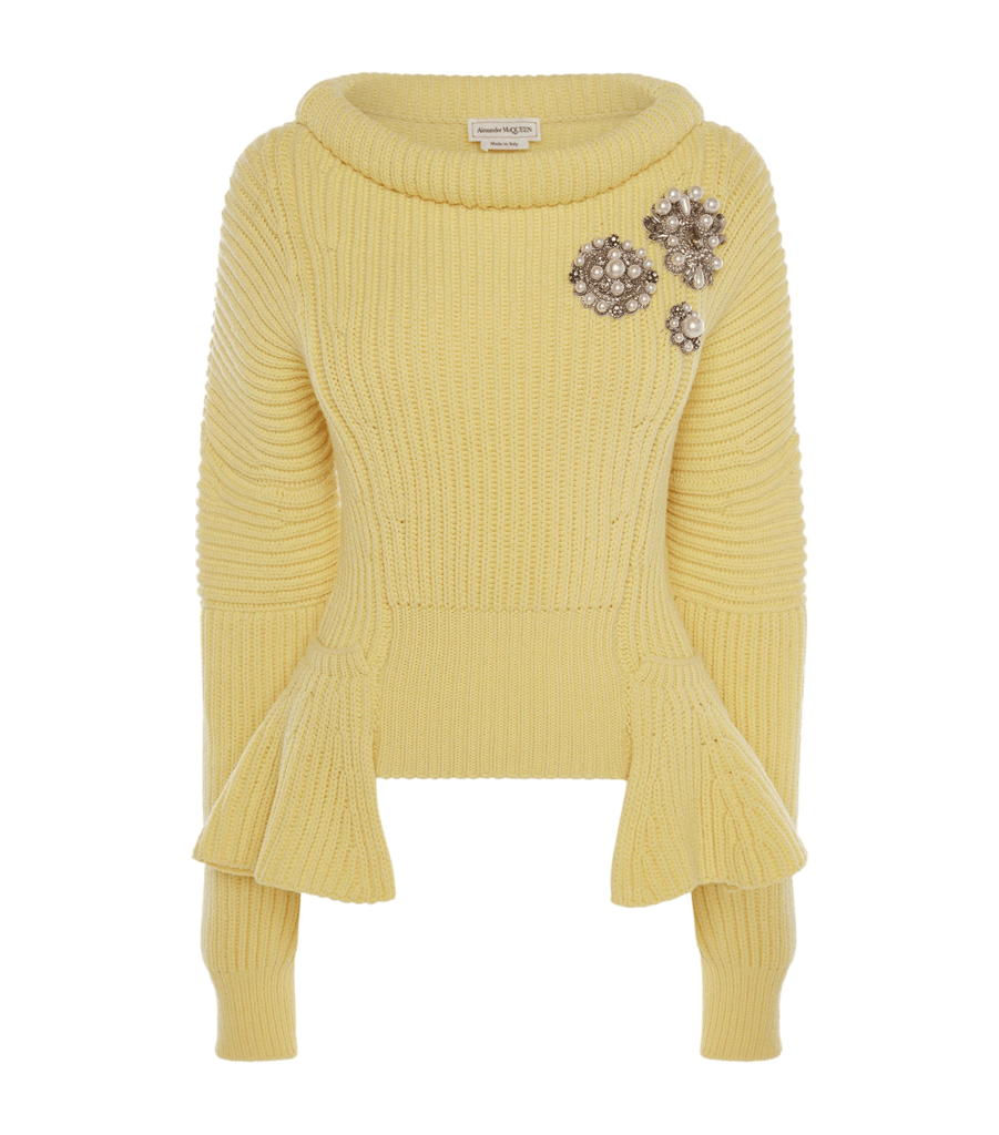 Alexander McQueen Wool Brooch-Detail Sweater in Yellow