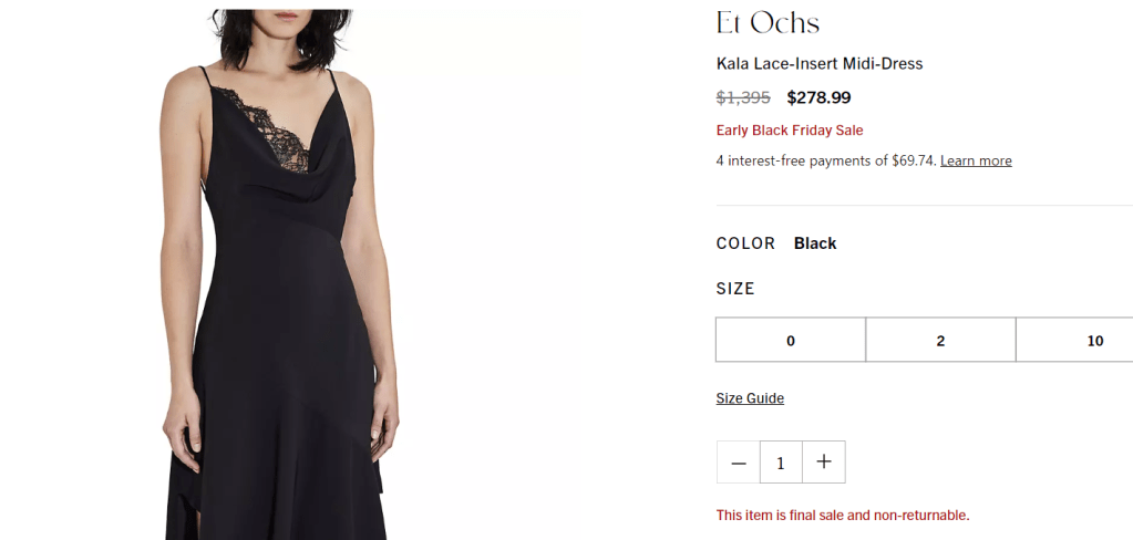 sold at Saks Fifth Avenue (link) for $279 (available sizes: US 0, 2, 10)