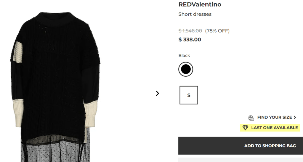 ) for $338 (available size: S)