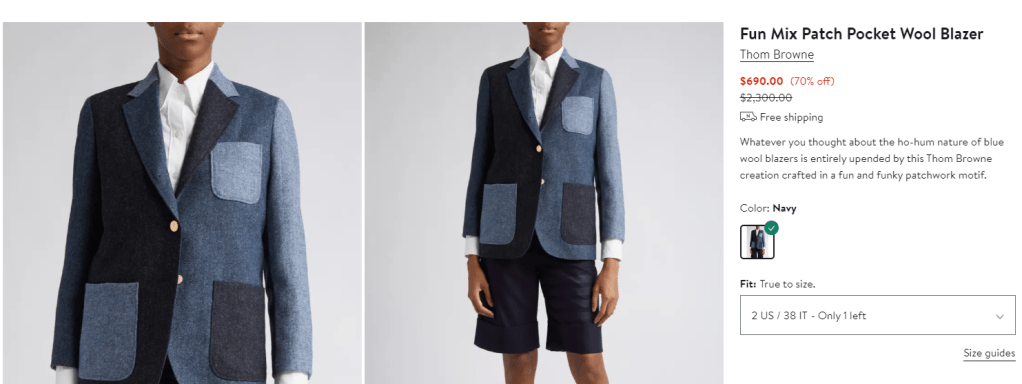 - compared with $1,380 at Net-a-Porter (link) and $1,610 at Thom Browne (link)